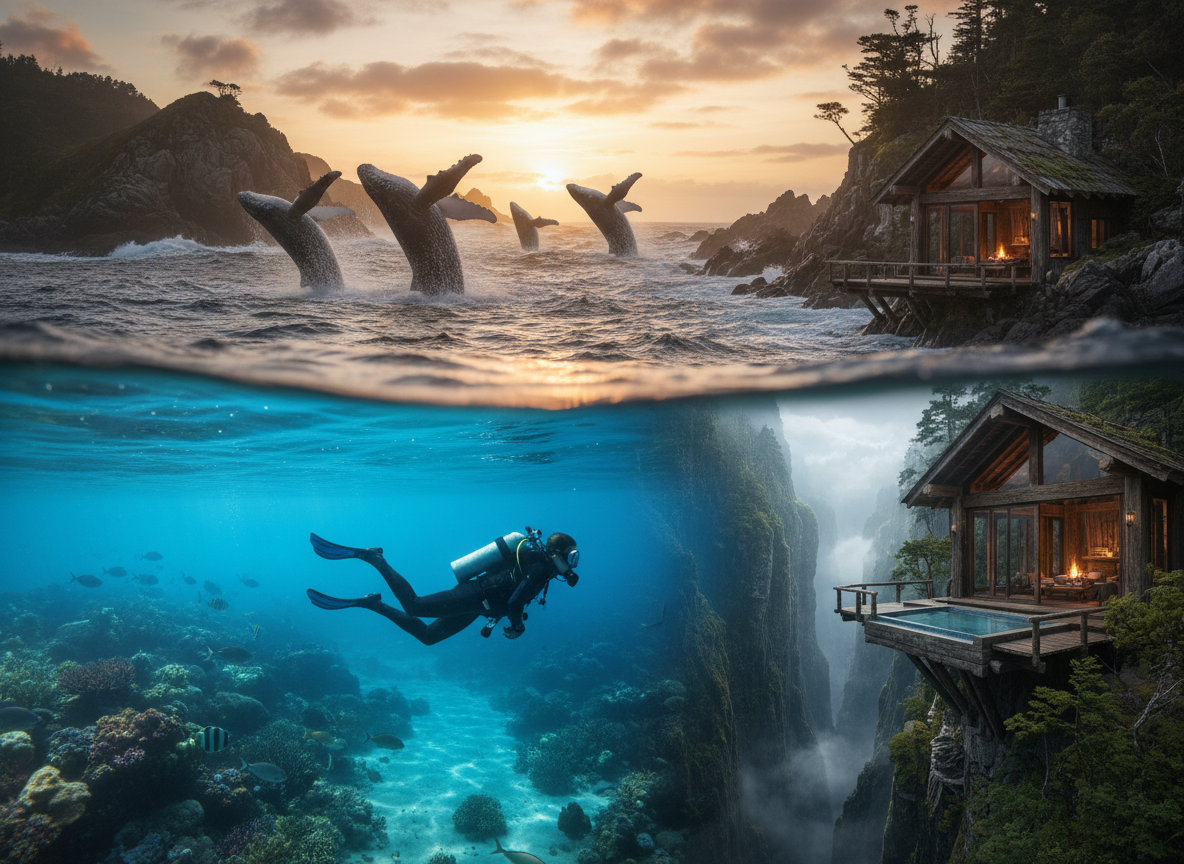 Whale watching and in‑water experiences (where permitted), scuba, fishing, tracking, and guided expeditions—run by certified pros with conservative safety standards.